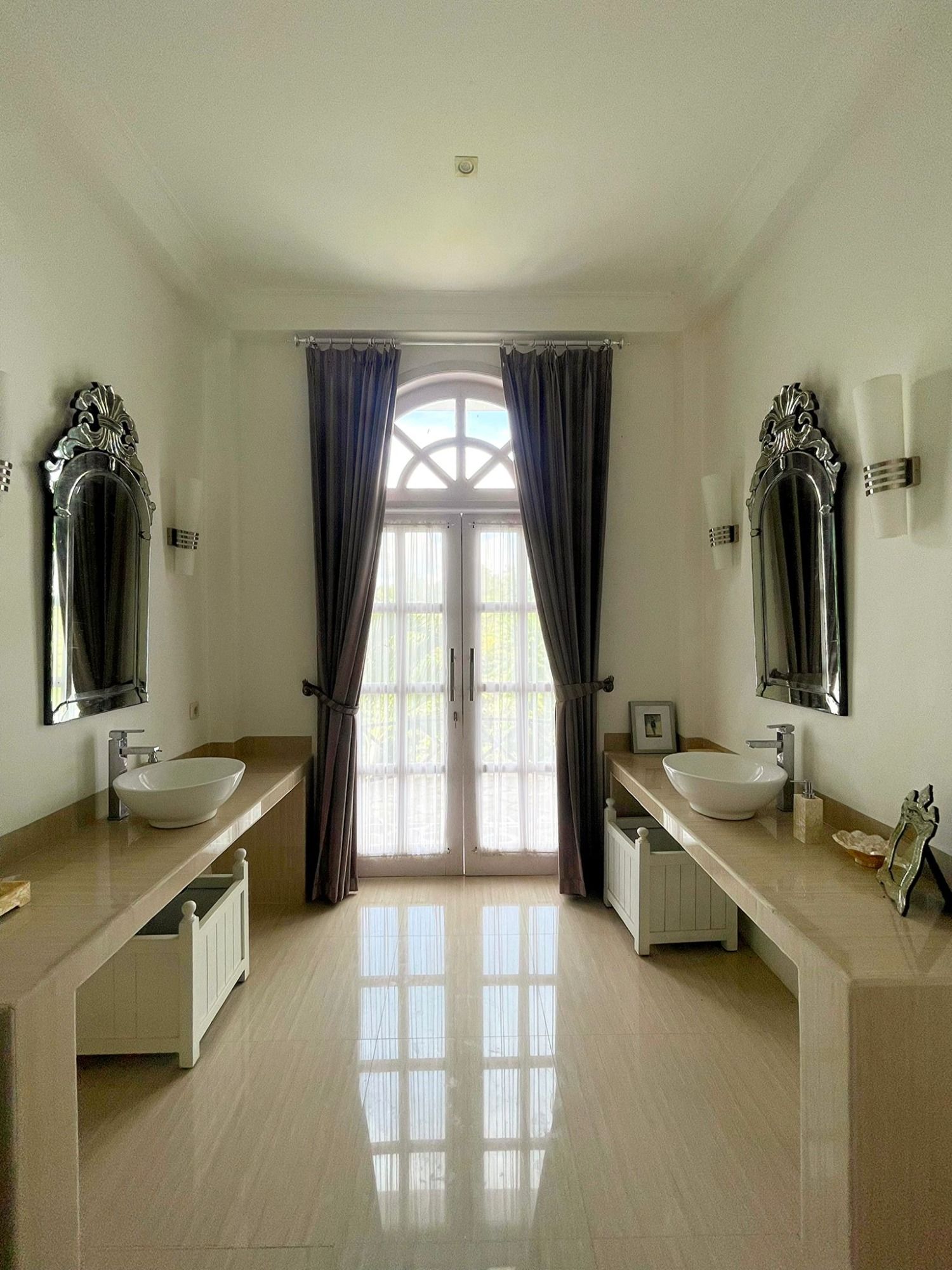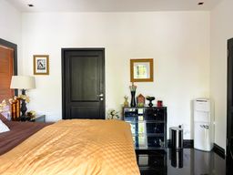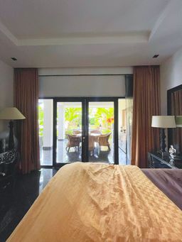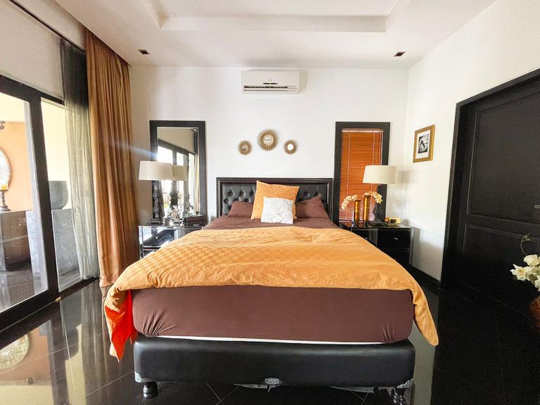 Dies ist das Hauptschlafzimmer des Hauses, es ist auf Poolebene mit dem Essbereich direkt davor. Gleich morgens in den Pool, dies ist der kürzeste Weg.